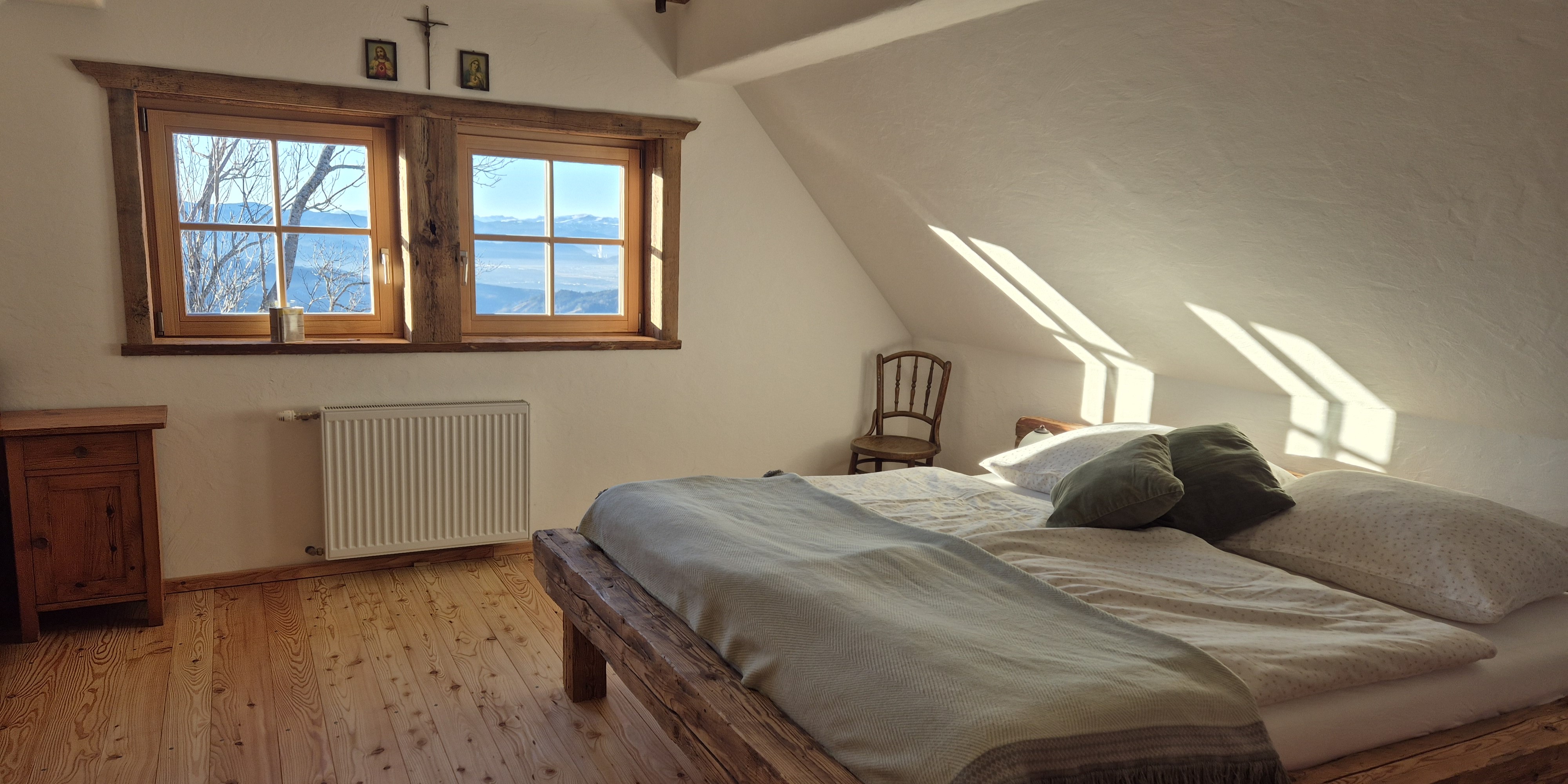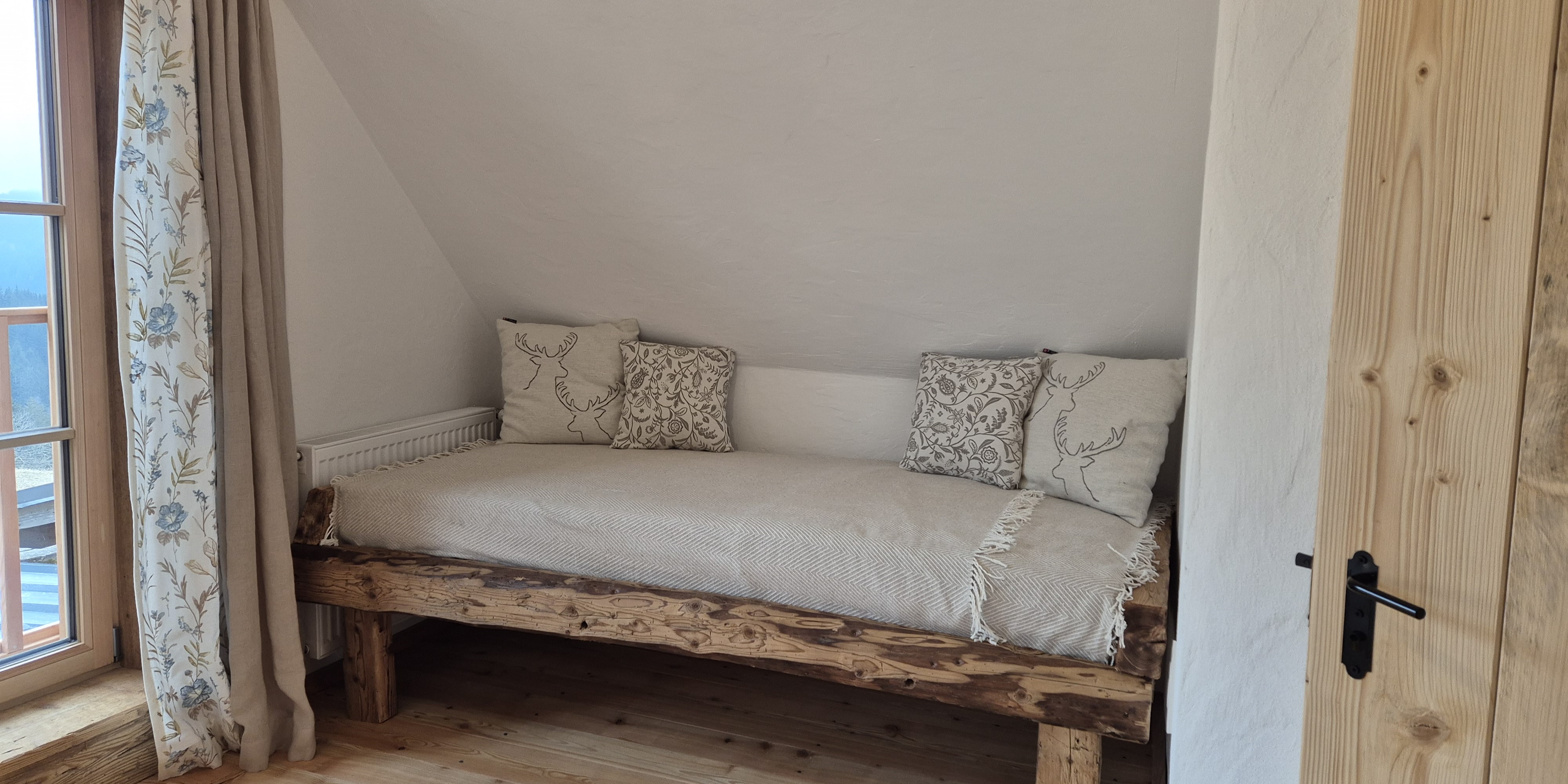 Kaum zu glauben, wie viel Platz so eine unscheinbare Almhütte bieten kann . . .